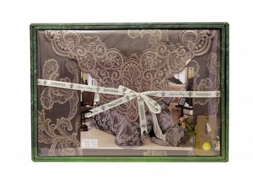 Комплекты изящно выложены в брендовую подарочную упаковку «KAZANOV.A.», выкладка подчеркивает все элементы декора комплекта: ламинированная коробка и фирменный пакет с ручками из шелковистого витого шнура