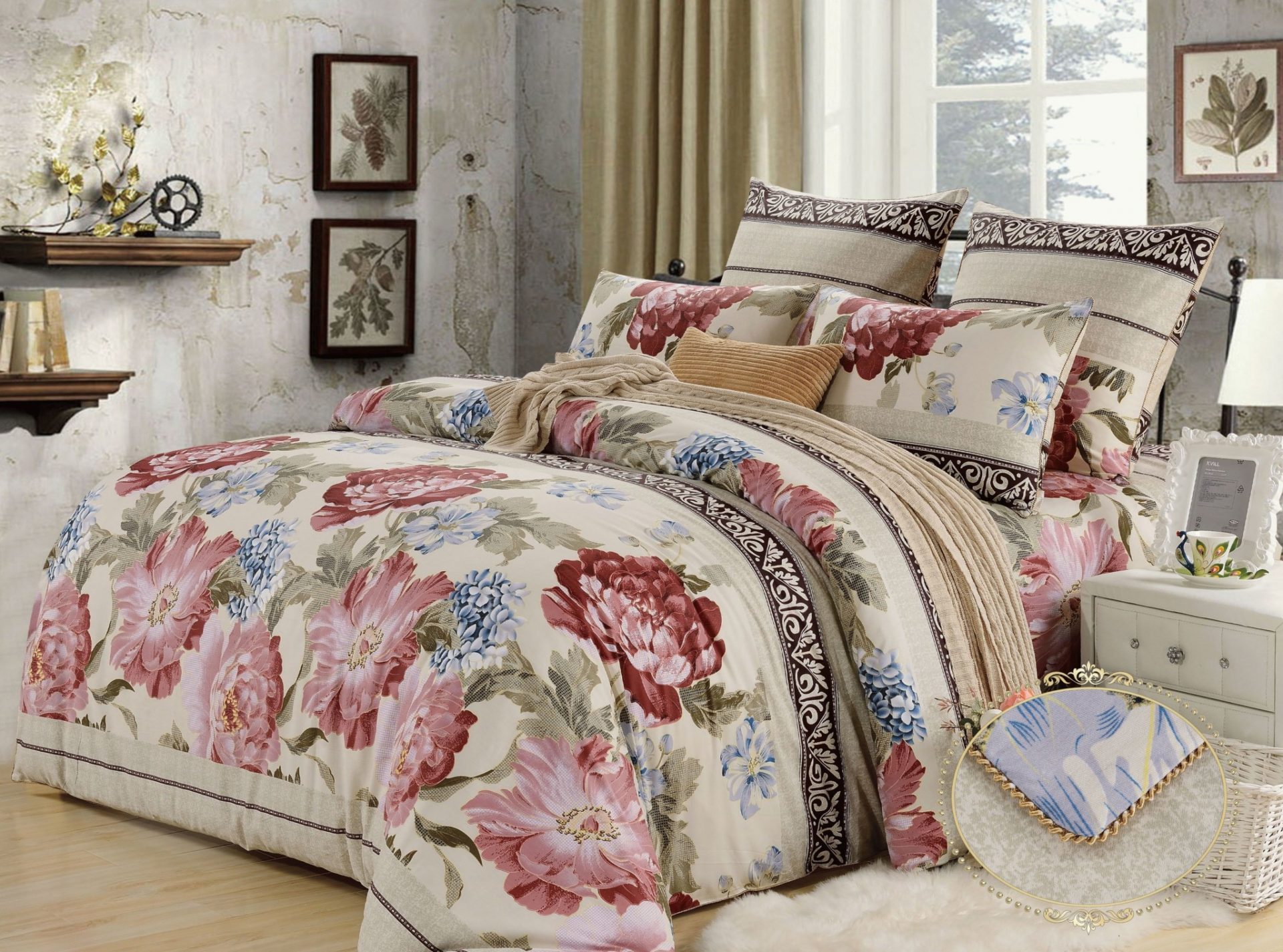 Комплекты постельного белья «KAZANOV.A.»(Казанова) из хлопкового сатина имеют превосходные характеристики: сатин высокого качества, шелковистый блеск, повышенная прочность, насыщенный цвет. Натуральные длинные волокна хлопка, которые используются в производстве материала для постельного белья, имеют высокую плотность, что и увеличивает износостойкость комплектов. Для нанесения рисунка на ткани используется реактивная из современных экологически безопасных красителей. В пододеяльнике и наволочках используются надёжные молнии, с логотипом компании на застёжке. При пошиве используются разработанные для компании «KAZANOV.A.» (Казанова) , уникальный вид отделки: Витой шёлковый кант.