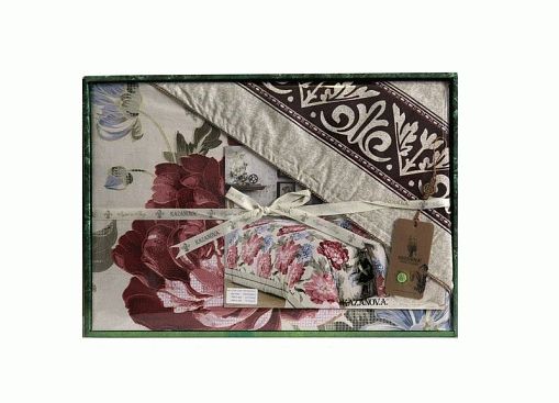 Комплекты изящно выложены в брендовую подарочную упаковку «KAZANOV.A.», выкладка подчеркивает все элементы декора комплекта: ламинированная коробка и фирменный пакет с ручками из шелковистого витого шнура