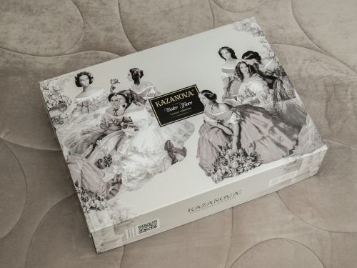 Комплекты изящно выложены в брендовую подарочную упаковку «KAZANOV.A.» с PVC ручкой.