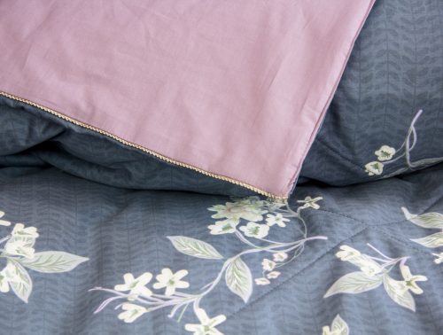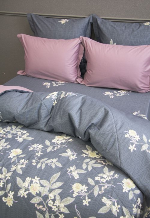 Всесезонная Коллекция «Dolce Fiore Cotton» представляет собой комплекты постельного белья и легких двусторонних одеял, в комбинации цветного и однотонного сатина высокого качества. Комплект состоит из: — Легкого Двустороннего одеяла, с оригинальным дизайном стежки, отделанное кружевом с бахрамой с 3х сторон. Легко стирается, не требует глажки, быстро высыхает, что позволяет пользоваться им в любое время года. — двух наволочек 50х70 из сатина с принтом и двух наволочек 70х70 из однотонного сатина; — простыни из сатина. Коллекция представлена в 3х комплектациях: евро, семейное, полуторное. На выбор самые популярные цвета в этом сезоне.