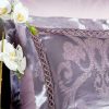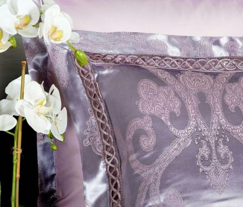 Коллекция постельного белья из жаккарда с отделкой мережкой от Kazanova (Казанова). Роскошная коллекция «Жаккард» — это невесомая и гладкая жаккардовая ткань, по ощущениям напоминающая натуральный шелк, в сочетании с 100% высококачественным хлопковым сатином. Однотонный цветной сатин выгодно подчеркивает уникальные узоры жаккардовой ткани, выполенные в венецианском стиле. Пододеяльник выполнен в комбинации: верх — люксовый жаккард, низ — натуральный сатин, рисунки в венецианском стиле с различными вариациями орнаментов. Наволочки 50*70 выполнены из шелковистого жаккарда, отделаны стильной планкой и аккуратной мережкой. В размере 70*70 наволочки выполнены их 100% хлопкового сатина и отделаны элегантным ушком из жаккардовой ткани в тон основному рисунку. Постельное белье прекрасно сохраняет свой изначальный вид , неприхотливо в использовании, выдерживает большое количество стирок, что является немаловажным фактором при выборе постельного белья.
