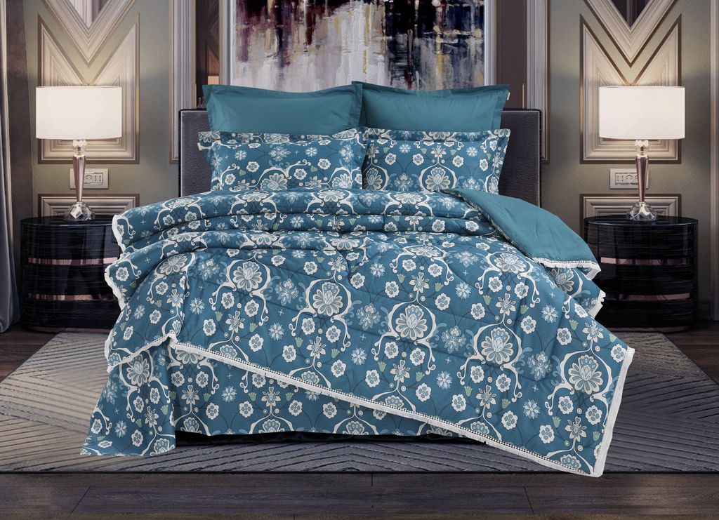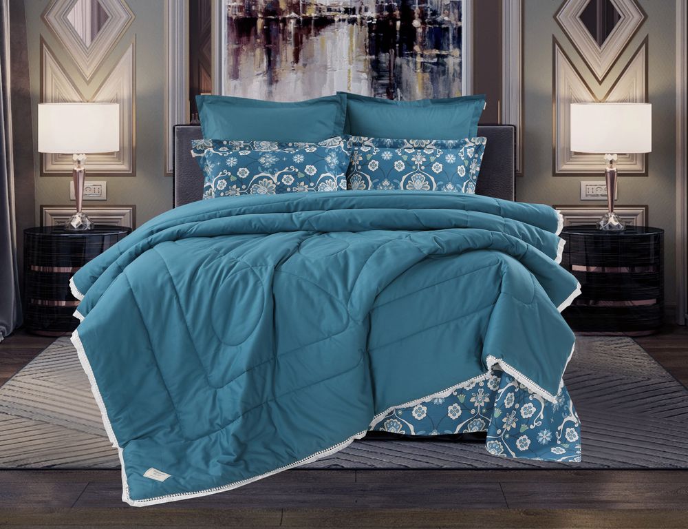 Всесезонная Коллекция «Dolce Fiore Cotton» представляет собой комплекты постельного белья и легких двусторонних одеял, в комбинации цветного и однотонного сатина высокого качества. Комплект состоит из: — Легкого Двустороннего одеяла, с оригинальным дизайном стежки, отделанное кружевом с бахрамой с 3х сторон. Легко стирается, не требует глажки, быстро высыхает, что позволяет пользоваться им в любое время года. — двух наволочек 50х70 из сатина с принтом и двух наволочек 70х70 из однотонного сатина; — простыни из сатина. Коллекция представлена в 3х комплектациях: евро, семейное, полуторное. На выбор самые популярные цвета в этом сезоне.