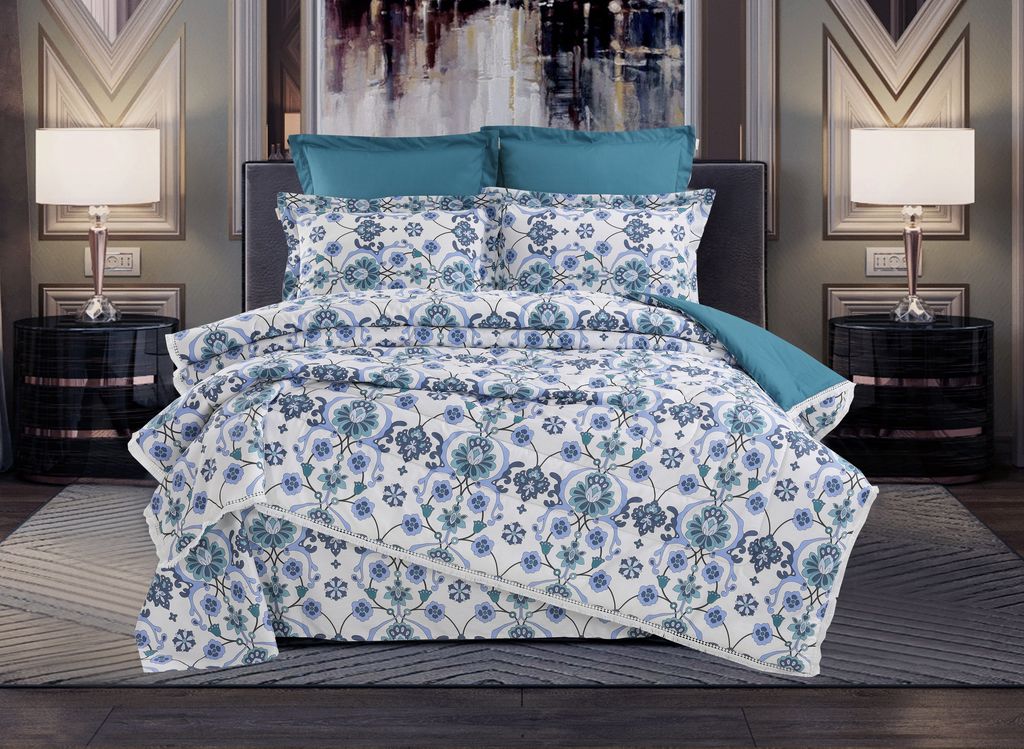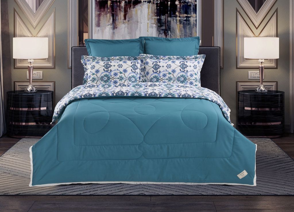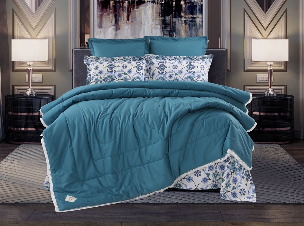 Всесезонная Коллекция «Dolce Fiore Cotton» представляет собой комплекты постельного белья и легких двусторонних одеял, в комбинации цветного и однотонного сатина высокого качества. Комплект состоит из: — Легкого Двустороннего одеяла, с оригинальным дизайном стежки, отделанное кружевом с бахрамой с 3х сторон. Легко стирается, не требует глажки, быстро высыхает, что позволяет пользоваться им в любое время года. — двух наволочек 50х70 из сатина с принтом и двух наволочек 70х70 из однотонного сатина; — простыни из сатина. Коллекция представлена в 3х комплектациях: евро, семейное, полуторное. На выбор самые популярные цвета в этом сезоне.