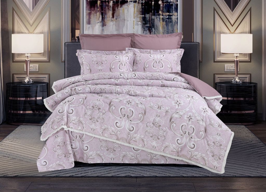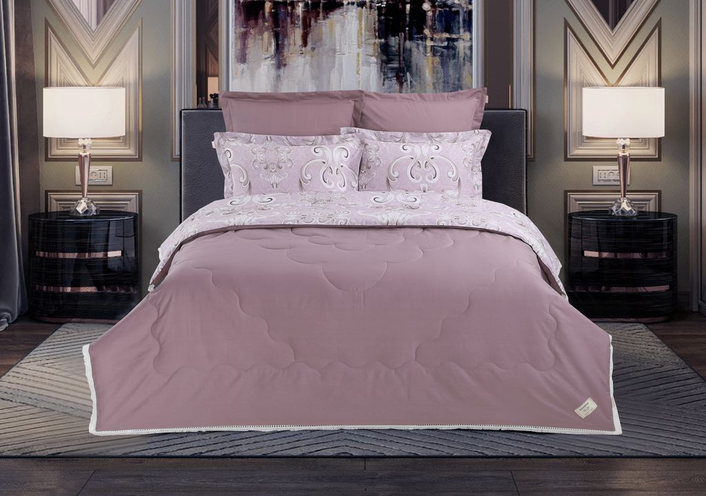 Всесезонная Коллекция «Dolce Fiore Cotton» представляет собой комплекты постельного белья и легких двусторонних одеял, в комбинации цветного и однотонного сатина высокого качества. Комплект состоит из: — Легкого Двустороннего одеяла, с оригинальным дизайном стежки, отделанное кружевом с бахрамой с 3х сторон. Легко стирается, не требует глажки, быстро высыхает, что позволяет пользоваться им в любое время года. — двух наволочек 50х70 из сатина с принтом и двух наволочек 70х70 из однотонного сатина; — простыни из сатина. Коллекция представлена в 3х комплектациях: евро, семейное, полуторное. На выбор самые популярные цвета в этом сезоне.