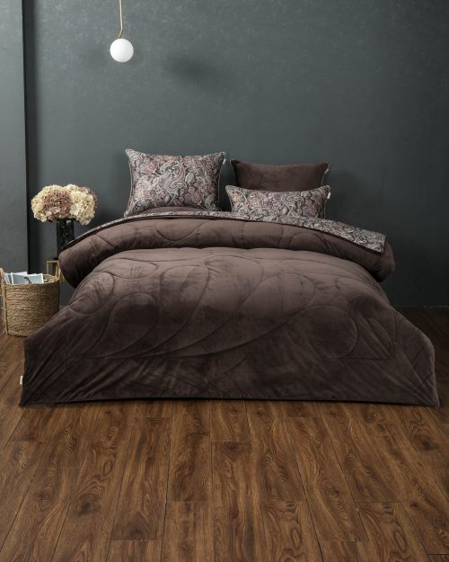 Одеяло: верхняя ткань – роскошный мягкий велюр, низ – высококачественный сатин — 100% египетский хлопок. Наполнитель одеяла 100% микрогель.