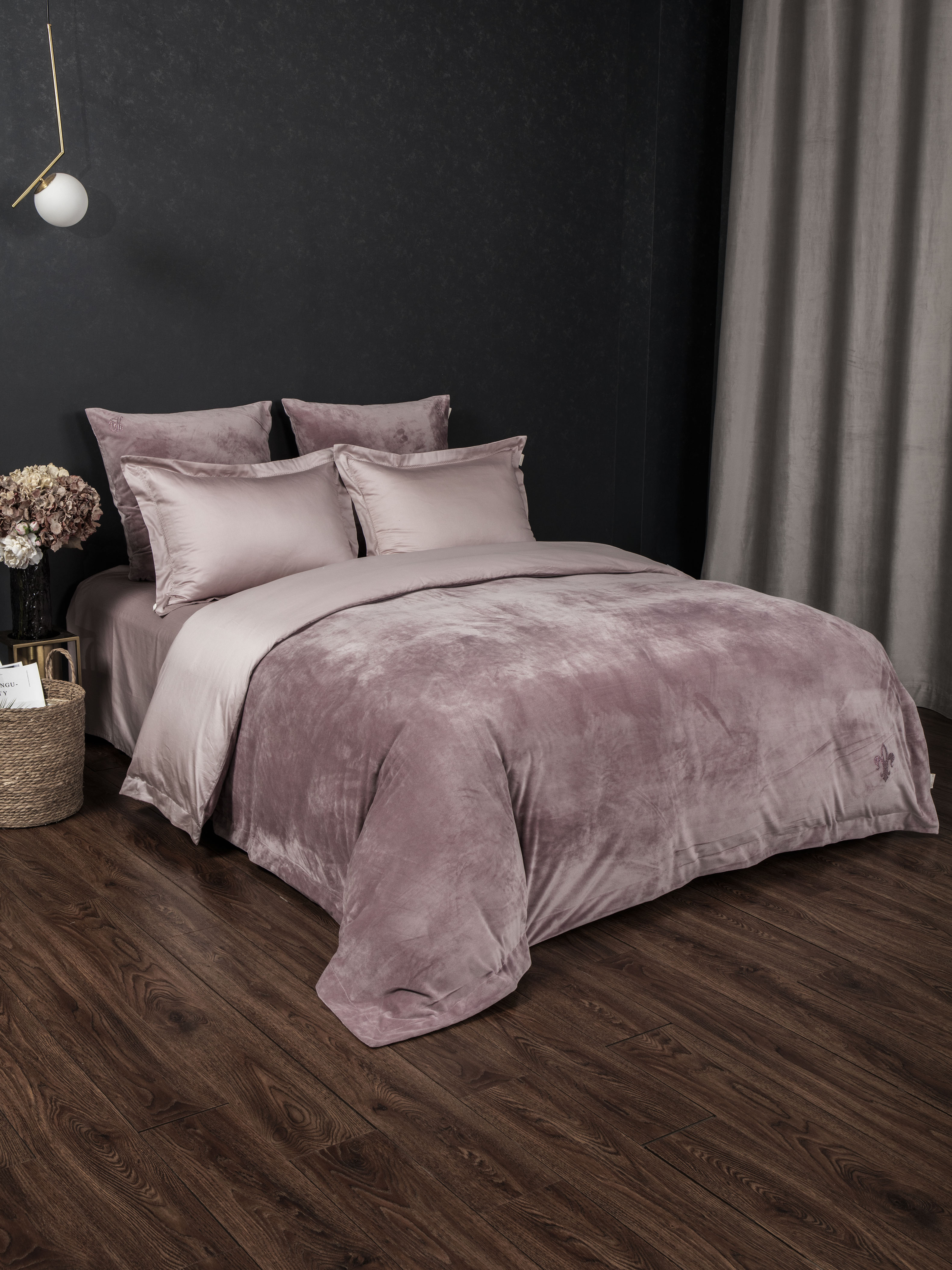 Пледодеяльник: верхняя ткань – роскошный мягкий велюр, низ – однотонный высококачественный сатин, украшен фирменным гербом из качественных страз, нанесенными высокотемпературным способом. Уникальность пледодеяльника, в возможности использовать его зимой в жарких спальнях, как облегающую простыню, в прохладных — с вложением одеяла, летом и в межсезонье – в качестве легкого одеяла как самостоятельный предмет!
