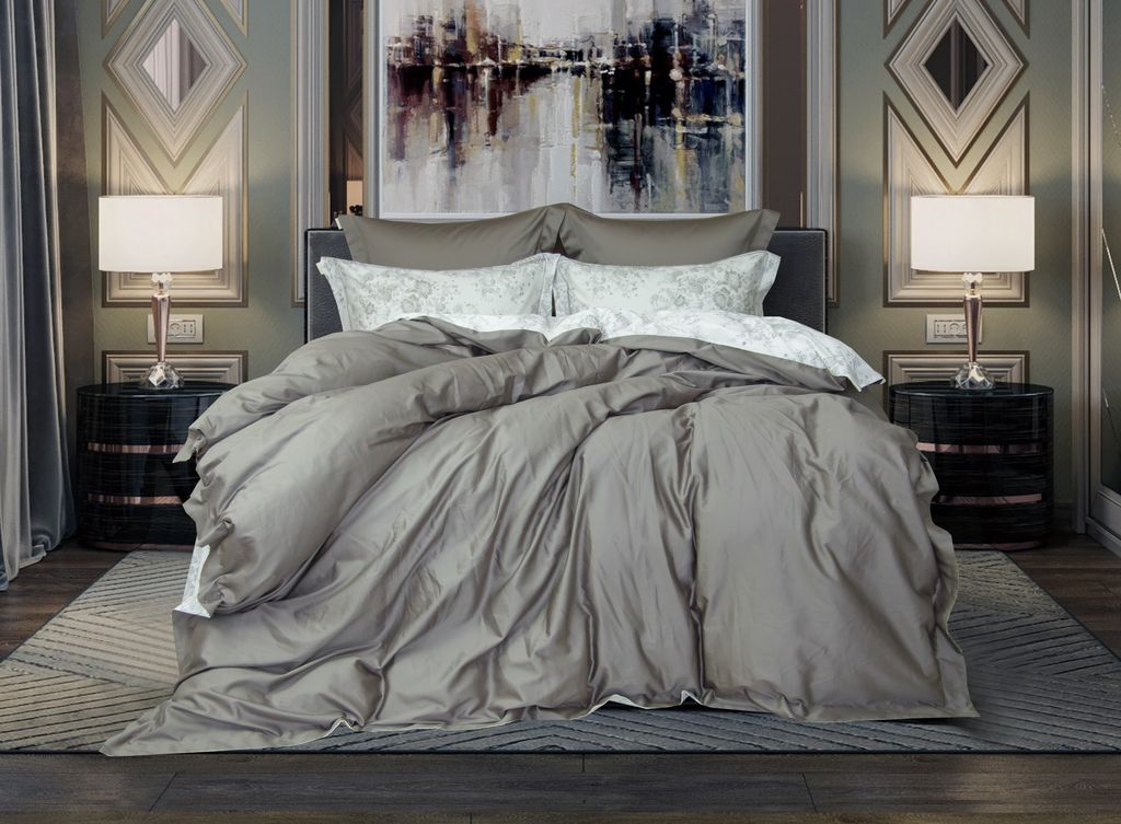 Роскошная коллекция постельного белья выполнена из длинноволокнистого однотонного египетского хлопка плотного плетения 60х60 нитей в сочетании с печатным сатином высокой плотности плетения 133/72 Египетский хлопок по праву считается лучшим в мире, при его производстве используются только самые экологические и высококачественные материалы и красители. Ткань проходит двойную мерсеризацию, за счет чего достигается шелковистый эффект. Уникальность коллекции — обратная сторона выполнена из печатного сатина. с рисунком подобранным в цвет к однотонному.Вы сами задаете настроение вашей спальни — цветной либо однотонный. Важно! Пошив подрозумевает использование любой стороны, благодаря тому что молния вшита в край. Пододеяльник — одна сторона однотонный египетский хлопок , вторая печатный сатин, ушко 5 см Наволочки одна сторона однотонный египетский хлопок, вторая печатный сатин, ушко 5 см, с утонченной вышивкой в тон сатина. Размерный ряд — евро. При пошиве используется разработанные для компании брендовые знаки KAZANOV.A.: фирменный бренд лейбл, навеска, лейбл со знаками ухода. Комплекты изящно выложены в Брендовую подарочную упаковку «KAZANOV.A.»: ламинированная коробка + фирменный пакет с ручками из шелковистого витого шнура.