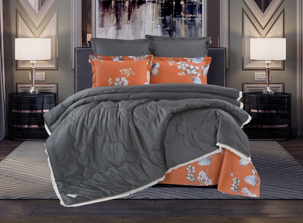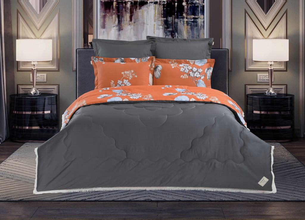 Всесезонная Коллекция «Dolce Fiore Cotton» представляет собой комплекты постельного белья и легких двусторонних одеял, в комбинации цветного и однотонного сатина высокого качества. Комплект состоит из: — Легкого Двустороннего одеяла, с оригинальным дизайном стежки, отделанное кружевом с бахрамой с 3х сторон. Легко стирается, не требует глажки, быстро высыхает, что позволяет пользоваться им в любое время года. — двух наволочек 50х70 из сатина с принтом и двух наволочек 70х70 из однотонного сатина; — простыни из сатина. Коллекция представлена в 3х комплектациях: евро, семейное, полуторное. На выбор самые популярные цвета в этом сезоне.