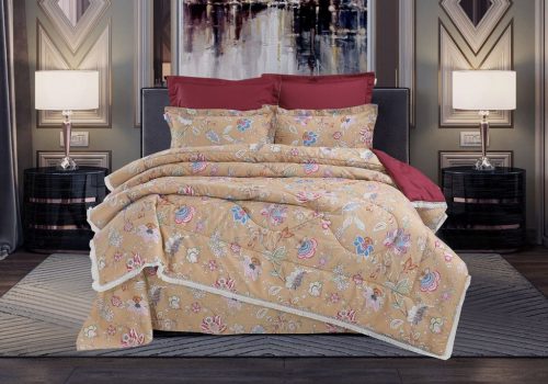 Всесезонная Коллекция «Dolce Fiore Cotton» представляет собой комплекты постельного белья и легких двусторонних одеял, в комбинации цветного и однотонного сатина высокого качества. Комплект состоит из: — Легкого Двустороннего одеяла, с оригинальным дизайном стежки, отделанное кружевом с бахрамой с 3х сторон. Легко стирается, не требует глажки, быстро высыхает, что позволяет пользоваться им в любое время года. — двух наволочек 50х70 из сатина с принтом и двух наволочек 70х70 из однотонного сатина; — простыни из сатина. Коллекция представлена в 3х комплектациях: евро, семейное, полуторное. На выбор самые популярные цвета в этом сезоне.