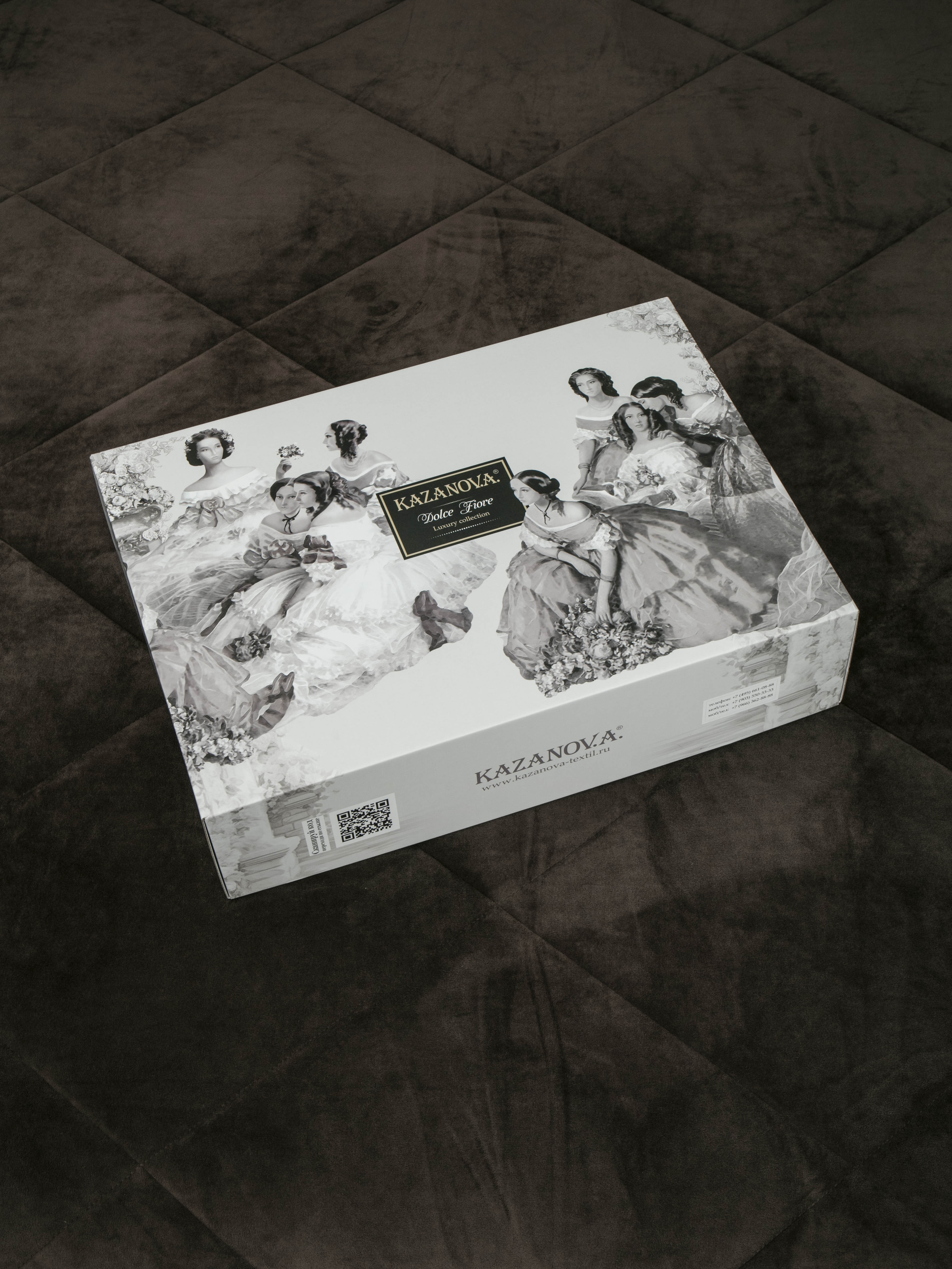 Комплекты изящно выложены в брендовую подарочную упаковку «KAZANOV.A.» с PVC ручкой.