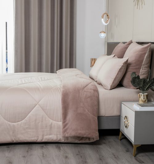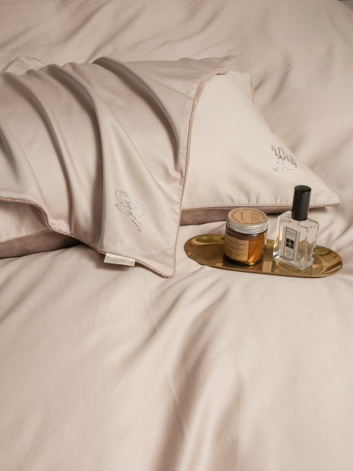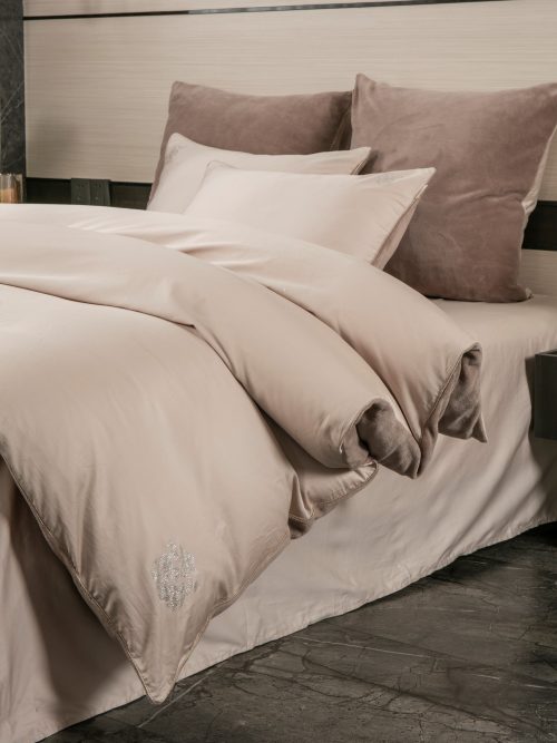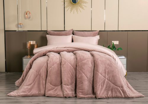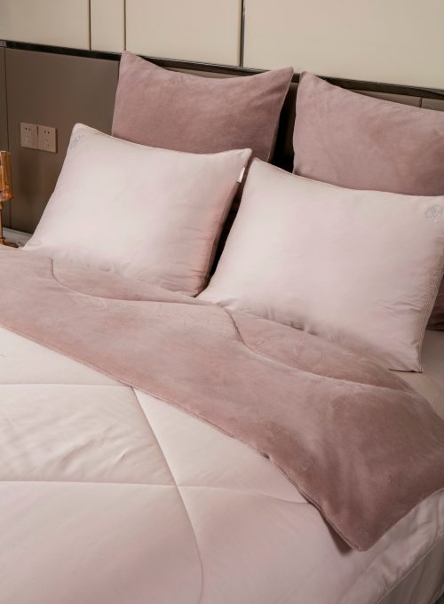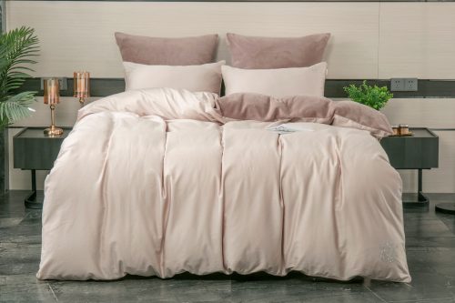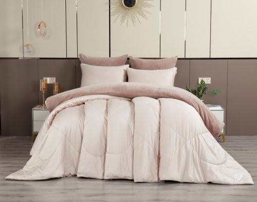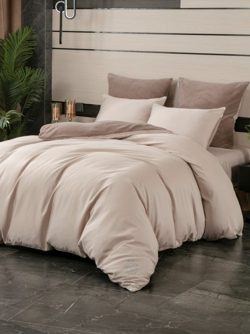 Коллекция Premium сегмента, постельное белье с одеялом «Lindor Duo». Комплекты состоят из сочетания тканей двух цветов. Двухстороннее одеяло: прохладный египетский хлопок и роскошный премиум-велюр, украшен элегантной стежкой. Комплект идеально подойдет для любителей поспать под кондиционером, велюровая сторона приятно окутает тело, сторона с египетским хлопком предназначена для любителей естественной прохлады в жару. Украшена гербом компании «KAZANOV.A.» из страз. Отделано витым кантом! Двухсторонняя наволочка 50х70 декорирована логотипом из страз. Наволочки 70х70 выполнены из комбинации нежного велюра и египетского хлопка. Простынь выполнена из египетского хлопка. Размерный ряд: евро. Доступные цвета: пудра лаванда, латте пудра и жемчужный мох. Комплекты изящно выложены в Брендовую подарочную упаковку «KAZANOV.A.».