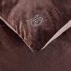 Пледодеяльник: верхняя ткань – роскошный мягкий велюр, низ – однотонный высококачественный сатин, украшен фирменным гербом из качественных страз, нанесенными высокотемпературным способом. Уникальность пледодеяльника, в возможности использовать его зимой в жарких спальнях, как облегающую простыню, в прохладных — с вложением одеяла, летом и в межсезонье – в качестве легкого одеяла как самостоятельный предмет!