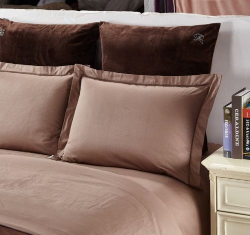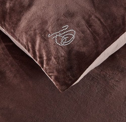 Сатиновая наволочка 50х70 отделана изящной вышивкой. Наволочки 70х70 выполнены из комбинации нежного велюра и сатина, украшены стразами в форме буквы К. Простынь выполнена из сатина. Доступные цвета: бежевый, капучино, мави.