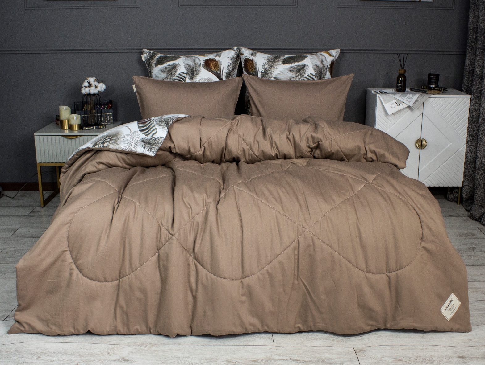 Всесезонная коллекция «Dolce Fiore Cotton» представляет собой комплекты постельного белья и легких двусторонних одеял, в комбинации цветного и однотонного сатина высокого качества. Комплект состоит из  легкого двустороннего одеяла, с оригинальным дизайном стежки, отделанное кружевом с бахрамой с 3х сторон. Легко стирается, не требует глажки, быстро высыхает, что позволяет пользоваться им в любое время года. Наполнитель: благодаря миксу органического волокна льна и экофайбера, обладает невесомыми и облегающими свойствам, хорошей воздупроницаемостью и терморегуляцией.