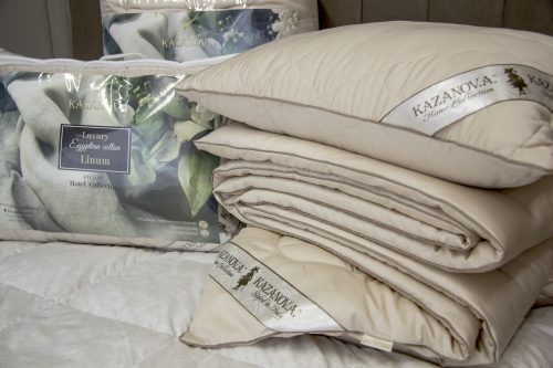 Коллекция Luxury Egyptian cotton Linum. Мы создали для Вас уникальную коллекцию подушек и одеял как в дорогих отелях, по очень привлекательной цене. Чехол одеял выполнен из жаккардового египетского хлопка плотного плетения. Элементами отделки служат: витой жаккардовый кант по всему периметру подушек и одеял, и шелковистая угловая лента с логотипом компании KAZANOV.A. Наполнитель 30% лен, 70% микрогель, обработанный ионами серебра и имеет ряд преимуществ: гипоаллергенный, не скатывается и быстро восстанавливает форму, благодаря высокой воздухопроницаемости не образует влагу и является антистатическим изделием. Дышащая текстура создает все условия для комфортного и по-настоящему приятного сна. Подушка и одеяла коллекции Luxury Egyptian cotton Linum от компании «KAZANOV.A.» поможет вам создать атмосферу необычайного комфорта и уюта в вашей спальне.