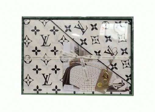 Комплекты изящно выложены в брендовую подарочную упаковку «KAZANOV.A.», выкладка подчеркивает все элементы декора комплекта: ламинированная коробка и фирменный пакет с ручками из шелковистого витого шнура
