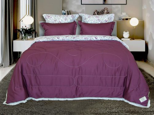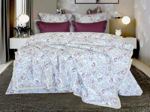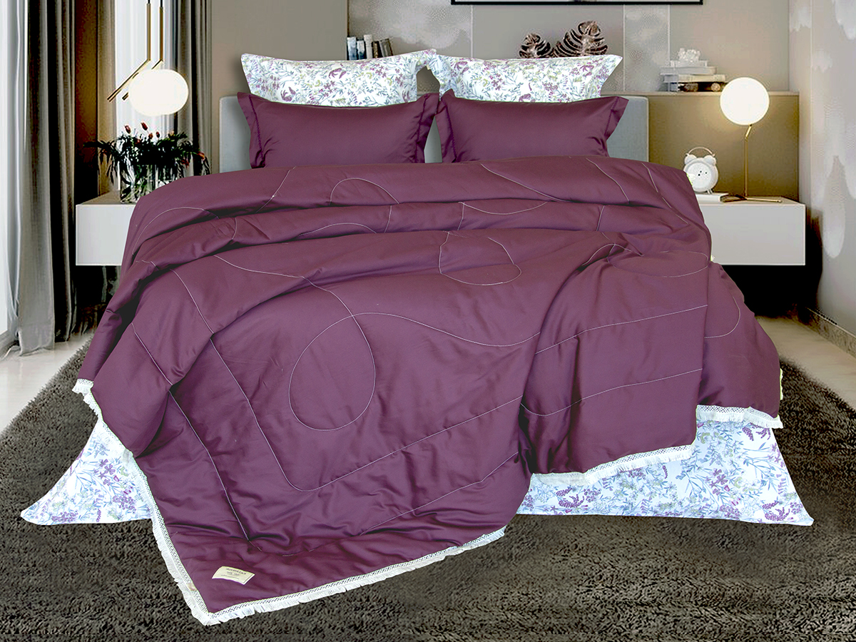 Всесезонная коллекция «Dolce Fiore Egipt Cotton» представляет собой комплекты постельного белья и легких двусторонних одеял, в комбинации цветного и однотонного сатина высокого качества. Комплект состоит из  легкого двустороннего одеяла, с оригинальным дизайном стежки, отделанное кружевом с бахрамой с 3х сторон. Легко стирается, не требует глажки, быстро высыхает, что позволяет пользоваться им в любое время года.