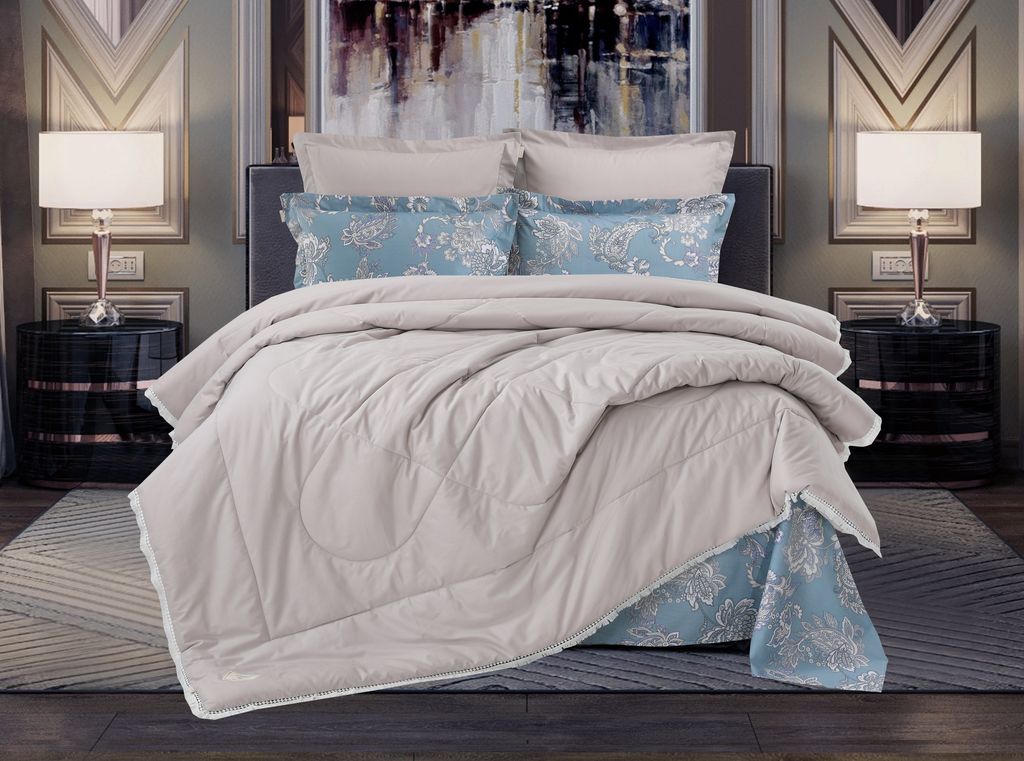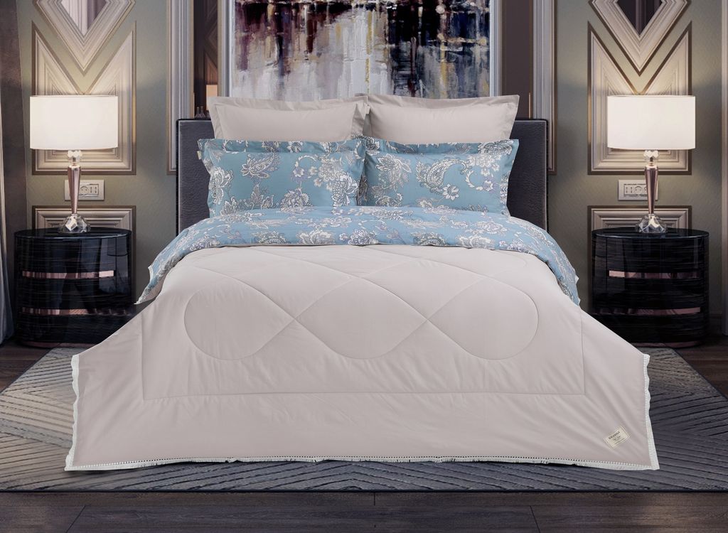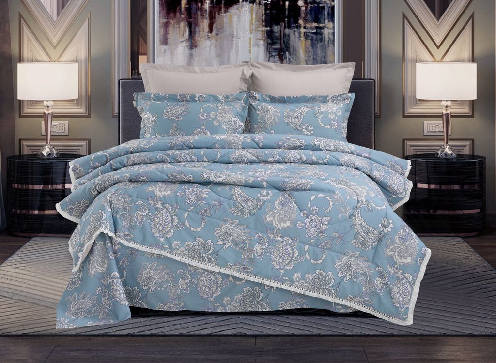 Всесезонная Коллекция «Dolce Fiore Cotton» представляет собой комплекты постельного белья и легких двусторонних одеял, в комбинации цветного и однотонного сатина высокого качества. Комплект состоит из: — Легкого Двустороннего одеяла, с оригинальным дизайном стежки, отделанное кружевом с бахрамой с 3х сторон. Легко стирается, не требует глажки, быстро высыхает, что позволяет пользоваться им в любое время года. — двух наволочек 50х70 из сатина с принтом и двух наволочек 70х70 из однотонного сатина; — простыни из сатина. Коллекция представлена в 3х комплектациях: евро, семейное, полуторное. На выбор самые популярные цвета в этом сезоне.