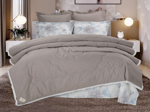Всесезонная коллекция «Dolce Fiore Cotton» представляет собой комплекты постельного белья и легких двусторонних одеял, в комбинации цветного и однотонного сатина высокого качества. Комплект состоит из легкого двустороннего одеяла, с оригинальным дизайном стежки, отделанное кружевом с бахрамой с 3х сторон. Легко стирается, не требует глажки, быстро высыхает, что позволяет пользоваться им в любое время года. Наполнитель: благодаря миксу органического волокна льна и экофайбера, обладает невесомыми и облегающими свойствам, хорошей воздупроницаемостью и терморегуляцией.