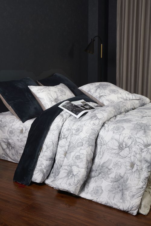 Одеяло: верхняя ткань – роскошный мягкий велюр, низ – высококачественный сатин — 100% египетский хлопок. Наполнитель одеяла 100% микрогель.