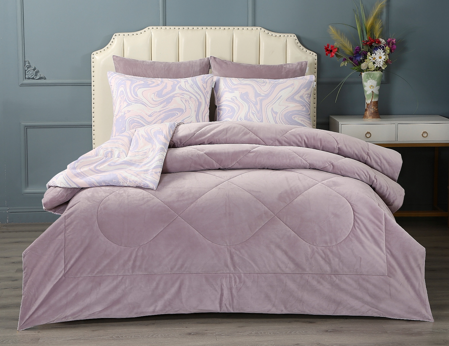 Летняя Коллекция АВС «Dolce Fiore» мы создали коллекцию из трёх видов ткани! Дизайнерские комплекты постельного белья с двухсторонним одеялом! А – прохладный сатин с рисунком, B – Solid Мако сатин, С — нежный велюр! — предусмотрен в одной стороне одеяла и наволочек 70*70. В одеяле — для любителей поспать под кондиционером, идеально подойдет велюровая сторона к телу, сторона с сатином — для любителей естественной прохлады в жару, отделано витым кантом и красивой слежкой! 4 наволочки: 50х70-2шт и 70х70-2шт, простынь из прохладного сатина. Коллекция представлена в 3х комплектациях: евро, семейное, полуторное. На выбор самые популярные цвета в этом сезоне.