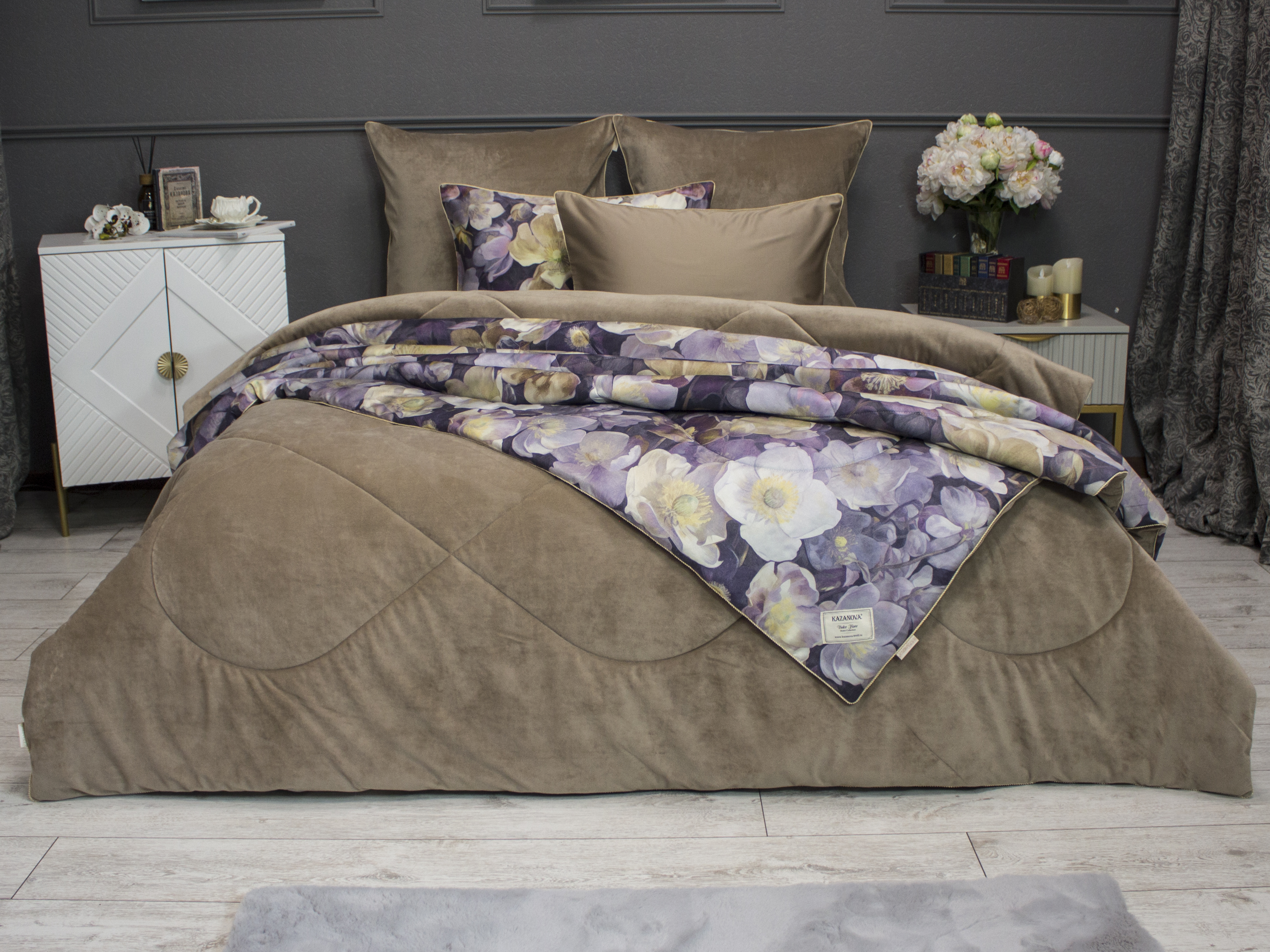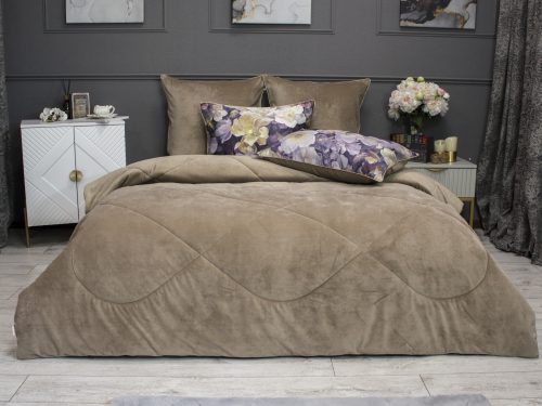 Одеяло: верхняя ткань – роскошный мягкий велюр, низ – высококачественный сатин — 100% египетский хлопок. Наполнитель одеяла 100% микрогель.