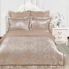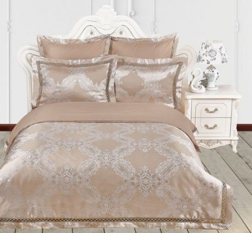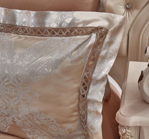 Коллекция постельного белья из жаккарда с отделкой мережкой от Kazanova (Казанова). Роскошная коллекция «Жаккард» — это невесомая и гладкая жаккардовая ткань, по ощущениям напоминающая натуральный шелк, в сочетании с 100% высококачественным хлопковым сатином. Однотонный цветной сатин выгодно подчеркивает уникальные узоры жаккардовой ткани, выполенные в венецианском стиле. Пододеяльник выполнен в комбинации: верх — люксовый жаккард, низ — натуральный сатин, рисунки в венецианском стиле с различными вариациями орнаментов. Наволочки 50*70 выполнены из шелковистого жаккарда, отделаны стильной планкой и аккуратной мережкой. В размере 70*70 наволочки выполнены их 100% хлопкового сатина и отделаны элегантным ушком из жаккардовой ткани в тон основному рисунку. Постельное белье прекрасно сохраняет свой изначальный вид , неприхотливо в использовании, выдерживает большое количество стирок, что является немаловажным фактором при выборе постельного белья.