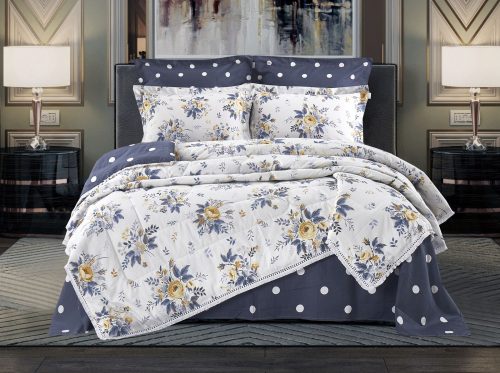 Всесезонная Коллекция «Dolce Fiore Cotton» представляет собой комплекты постельного белья и легких двусторонних одеял, в комбинации цветного и однотонного сатина высокого качества. Комплект состоит из: — Легкого Двустороннего одеяла, с оригинальным дизайном стежки, отделанное кружевом с бахрамой с 3х сторон. Легко стирается, не требует глажки, быстро высыхает, что позволяет пользоваться им в любое время года. — двух наволочек 50х70 из сатина с принтом и двух наволочек 70х70 из однотонного сатина; — простыни из сатина. Коллекция представлена в 3х комплектациях: евро, семейное, полуторное. На выбор самые популярные цвета в этом сезоне.