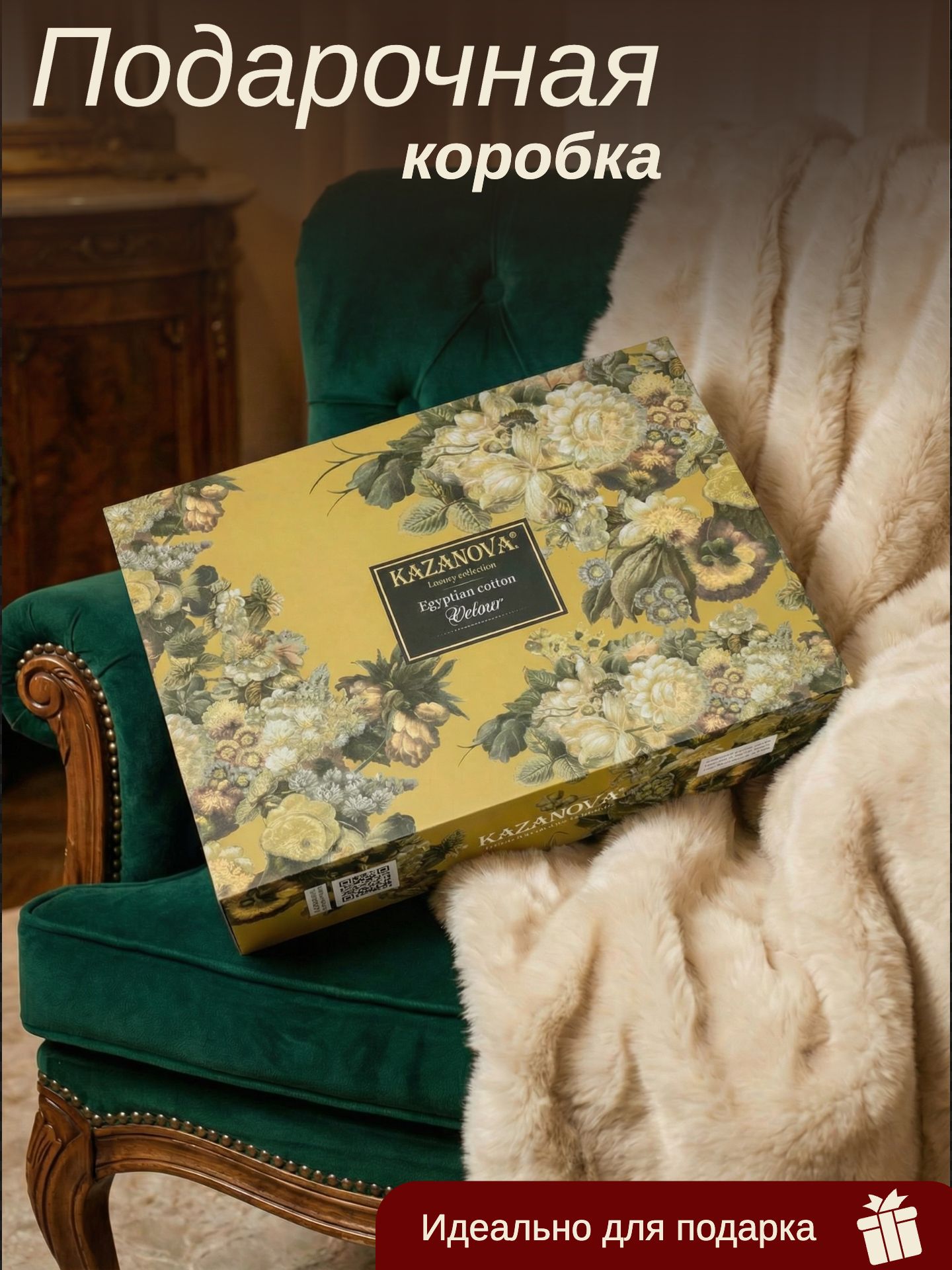 Комплекты изящно выложены в брендовую подарочную упаковку «KAZANOV.A.» с PVC ручкой.