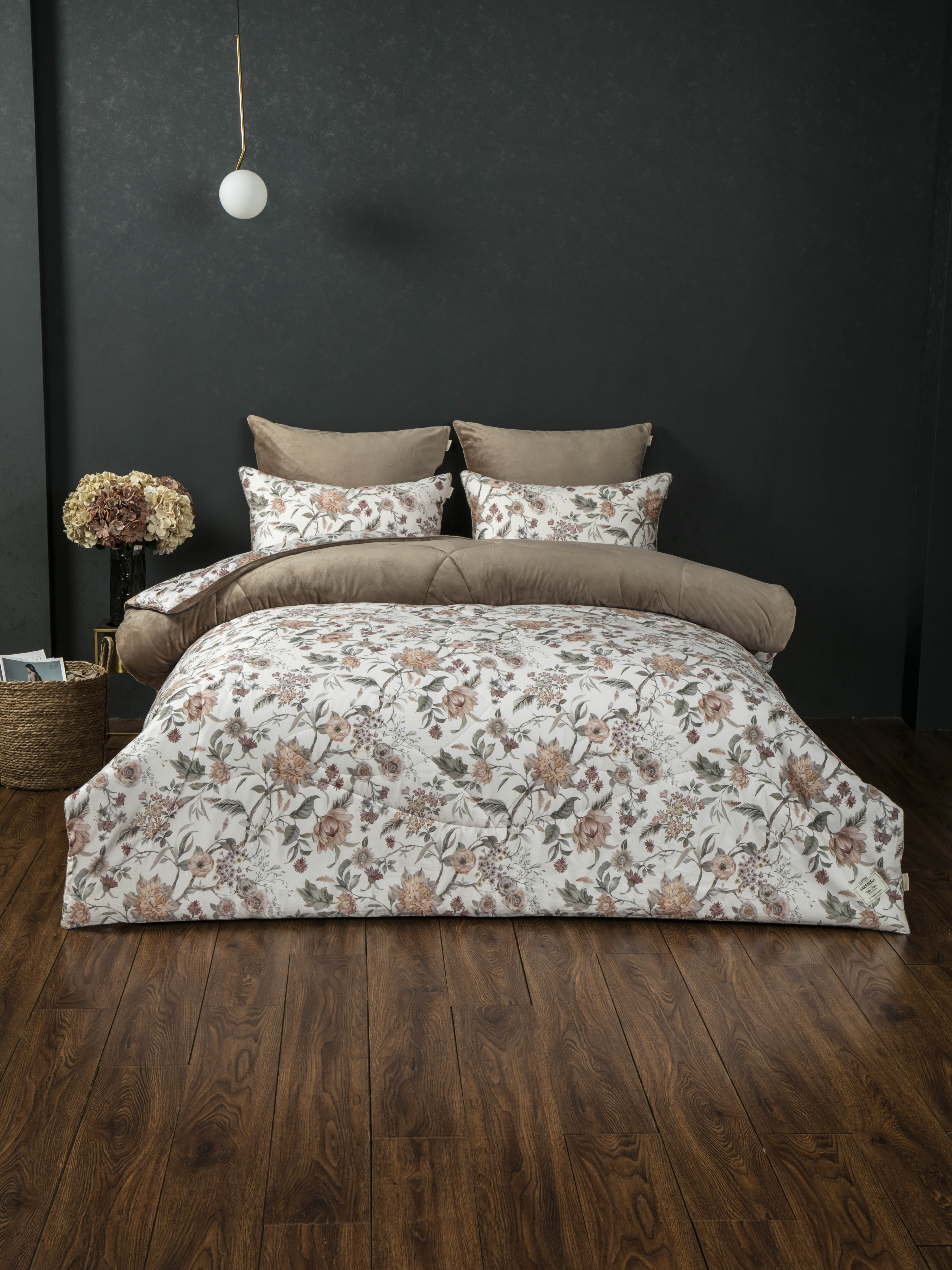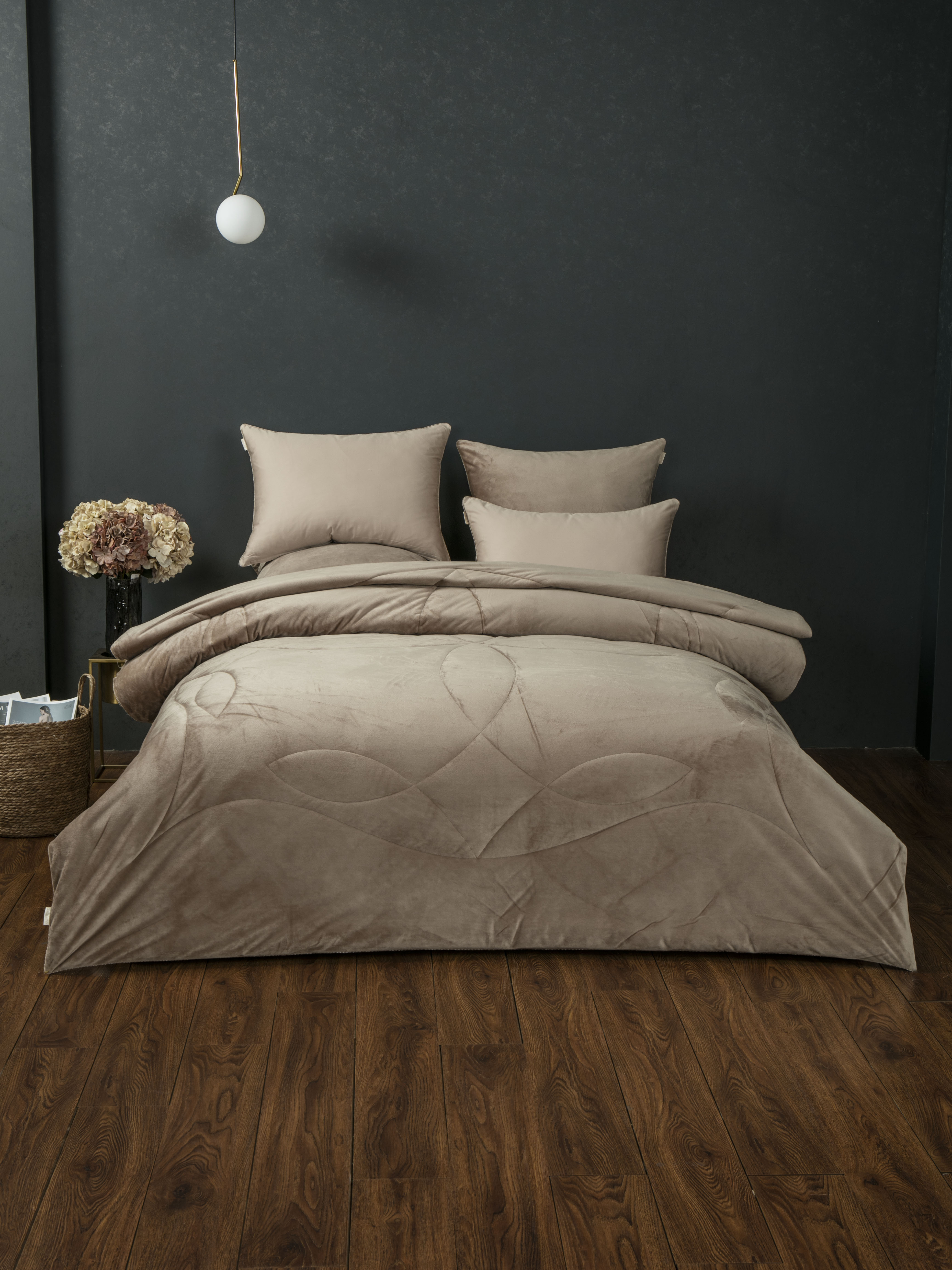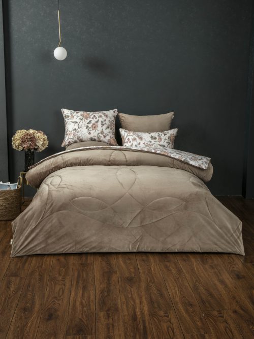 Одеяло: верхняя ткань – роскошный мягкий велюр, низ – высококачественный сатин — 100% египетский хлопок. Наполнитель одеяла 100% микрогель.