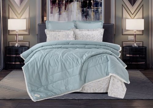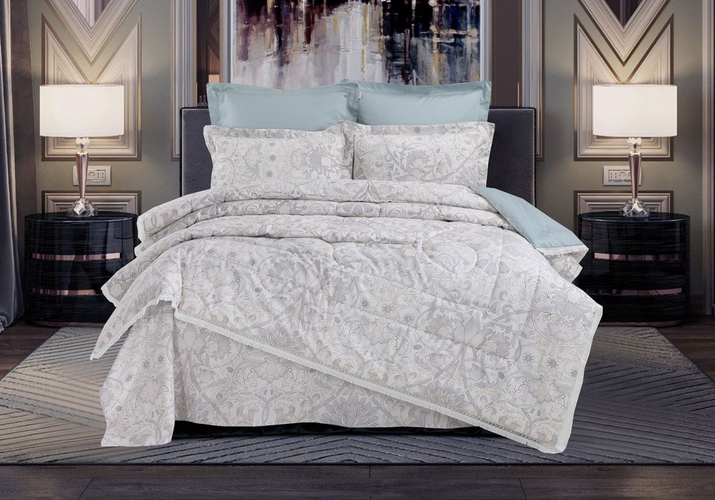 Всесезонная Коллекция «Dolce Fiore Cotton» представляет собой комплекты постельного белья и легких двусторонних одеял, в комбинации цветного и однотонного сатина высокого качества. Комплект состоит из: — Легкого Двустороннего одеяла, с оригинальным дизайном стежки, отделанное кружевом с бахрамой с 3х сторон. Легко стирается, не требует глажки, быстро высыхает, что позволяет пользоваться им в любое время года. — двух наволочек 50х70 из сатина с принтом и двух наволочек 70х70 из однотонного сатина; — простыни из сатина. Коллекция представлена в 3х комплектациях: евро, семейное, полуторное. На выбор самые популярные цвета в этом сезоне.