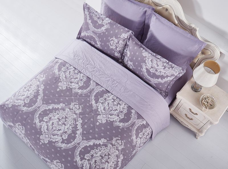 Коллекция постельного белья с одеялом «Sentimento» выполнена из высококачественного печатного сатина. Одеяло: верх — печатный сатин с планкой из однотонного сатина, низ — однотонный сатин. Оригинальный дизайн стежки подчеркивает орнаментный рисунок печатного сатина.