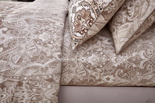 Комплекты постельного белья «KAZANOV.A.»(Казанова) из хлопкового сатина имеют превосходные характеристики: сатин высокого качества, шелковистый блеск, повышенная прочность, насыщенный цвет. Натуральные длинные волокна хлопка, которые используются в производстве материала для постельного белья, имеют высокую плотность, что и увеличивает износостойкость комплектов. Для нанесения рисунка на ткани используется реактивная из современных экологически безопасных красителей.  В пододеяльнике и наволочках используются надёжные молнии, с логотипом компании на застёжке. При пошиве используются разработанные для компании «KAZANOV.A.» (Казанова) , уникальный вид отделки: Витой шёлковый кант.