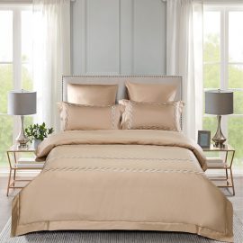 Цветовая палитра в нюдовых тонах. Комплекты представлены в размере Евро и включают в себя: — две наволочки 50х70; — две наволочки 70х70; — одеяло 200х220; — простынь 230х250. Коллекция «Riviera» от компании «KAZANOV.A.» — лучший подарок для ценителей стиля!