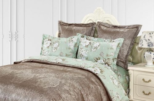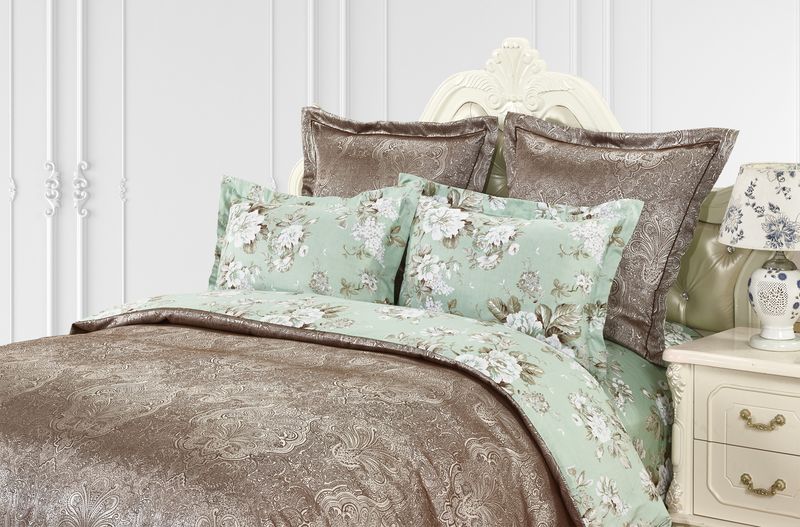 Пододеяльник выполнен в комбинации: верх люксовый жаккард, низ принтованный сатин. Отделка: шов-вышивка с трех сторон на ушке 5 см.