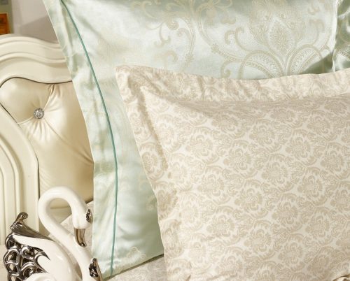 Наволочки 70х70 см в комбинации: вверх жаккард, низ принтованный сатина. Отделка: шов-вышивка с четырех сторон на ушке 5 см.