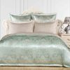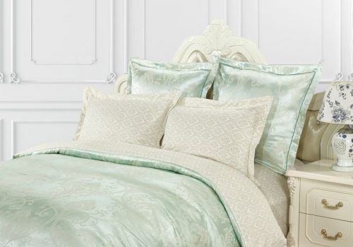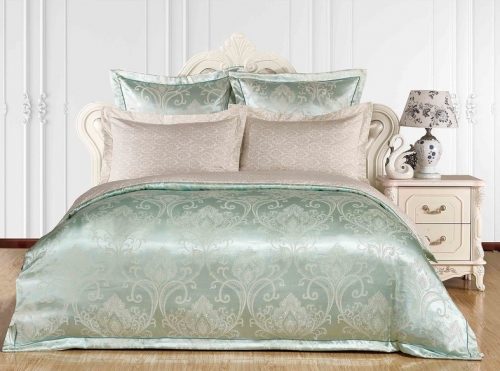 Пододеяльник выполнен в комбинации: верх люксовый жаккард, низ принтованный сатин. Отделка: шов-вышивка с трех сторон на ушке 5 см.