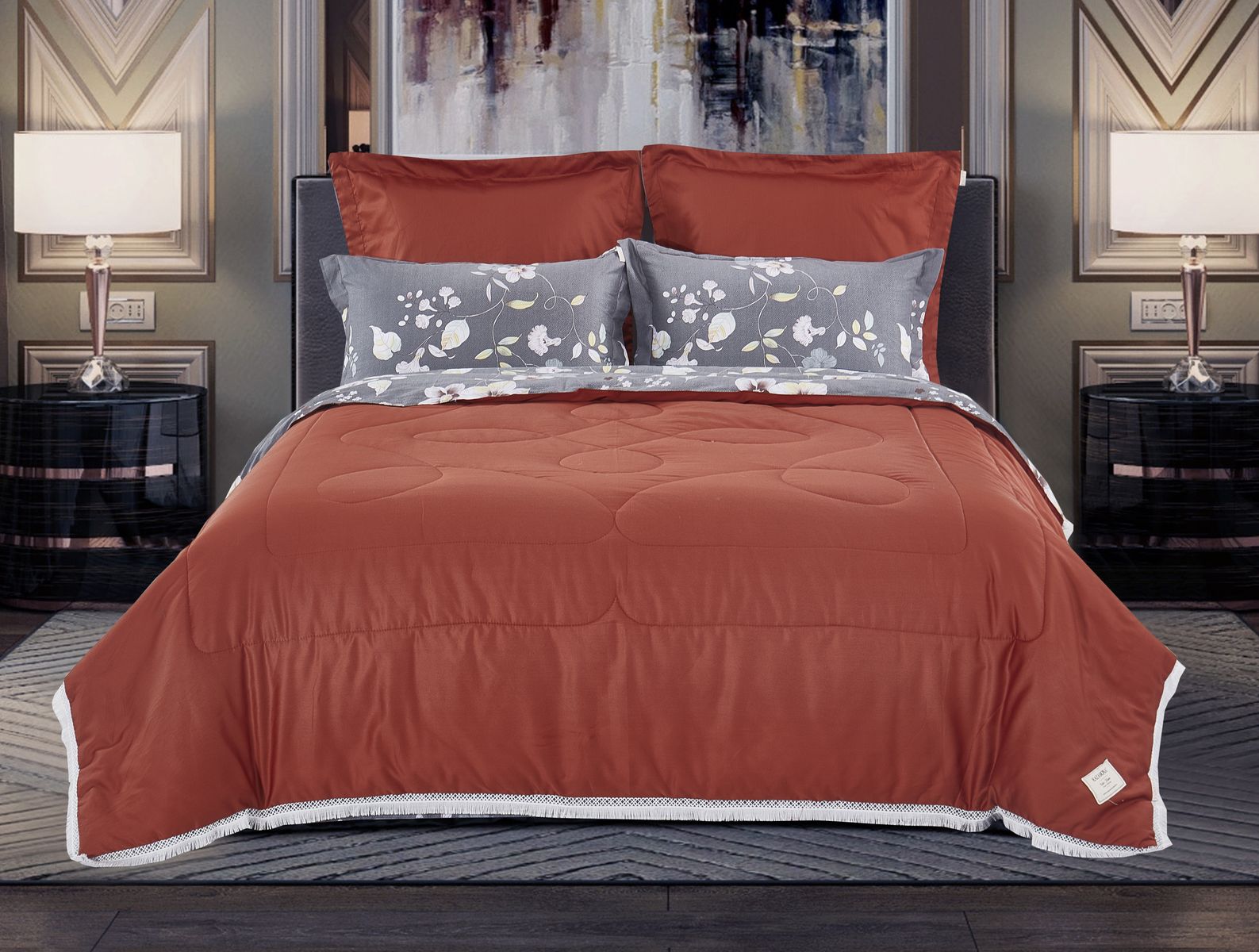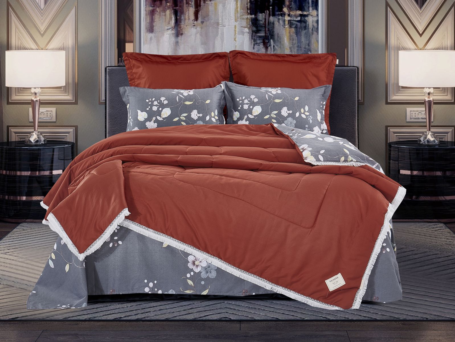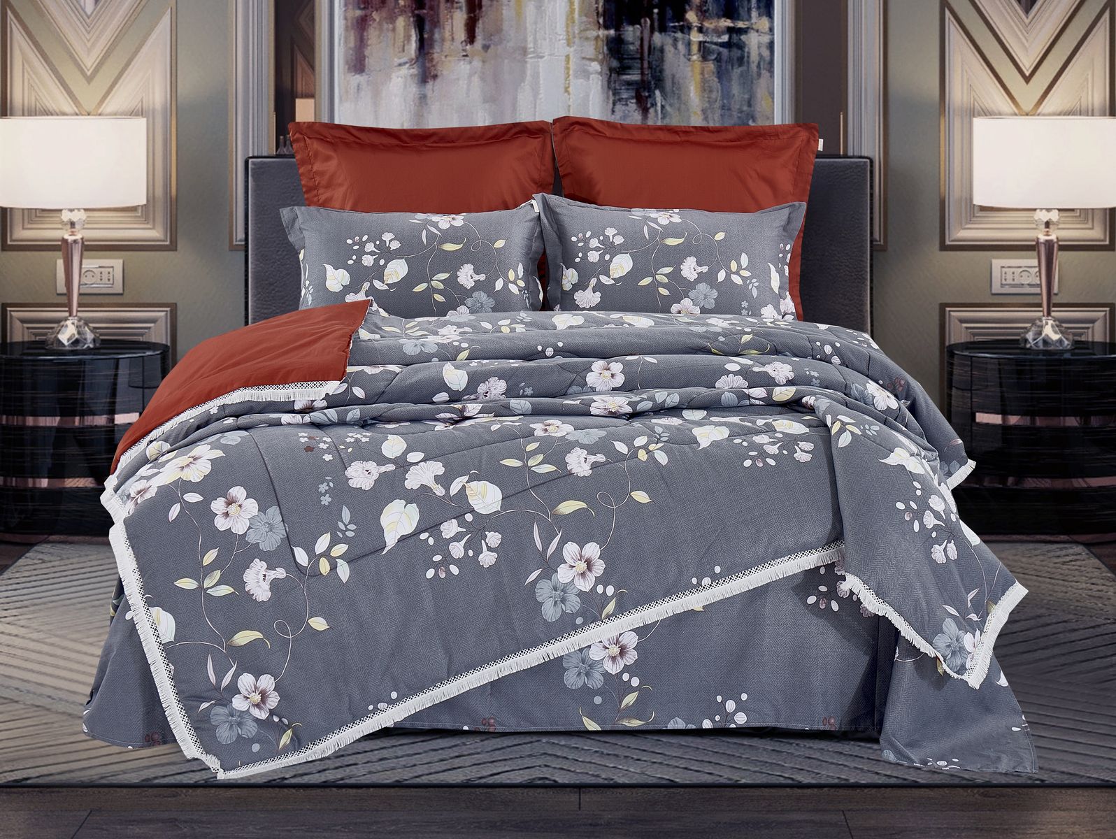 Всесезонная коллекция «Dolce Fiore Egypt Cotton» представляет собой комплекты постельного белья и легких двусторонних одеял, в комбинации цветного и однотонного сатина высокого качества. Комплект состоит из легкого двустороннего одеяла, с оригинальным дизайном стежки, отделанное кружевом с бахрамой с 3х сторон. Легко стирается, не требует глажки, быстро высыхает, что позволяет пользоваться им в любое время года.