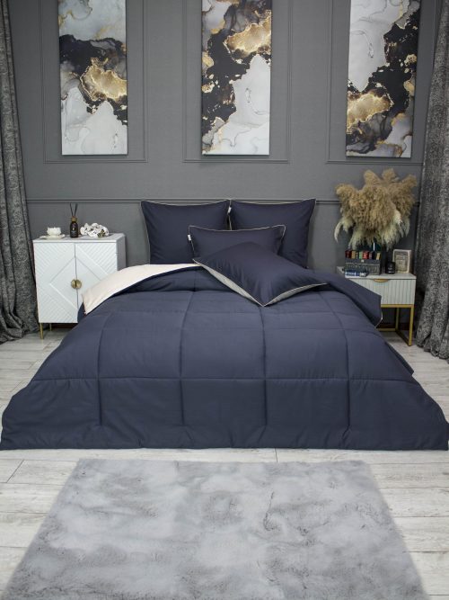 Коллекция Шеффилд Cotton. В основе коллекции — премиальный 100% хлопковый сатин: природная чистота, нежность в касании, благородный матовый оттенок. Ткань комплекта: 100% хлопок. Наполнитель: эко-волокно Микрогель — гипоаллергенный, лёгкий, с равномерным распределением тепла и комфортной терморегуляцией. Стежка “Шеффилд” — Шотландия у вас дома! Витой шелковистый кант — штрих утончённости в минималистичной эстетике; применяется в отделке наволочек иодеяла, мягко подчёркивая линии изделий.