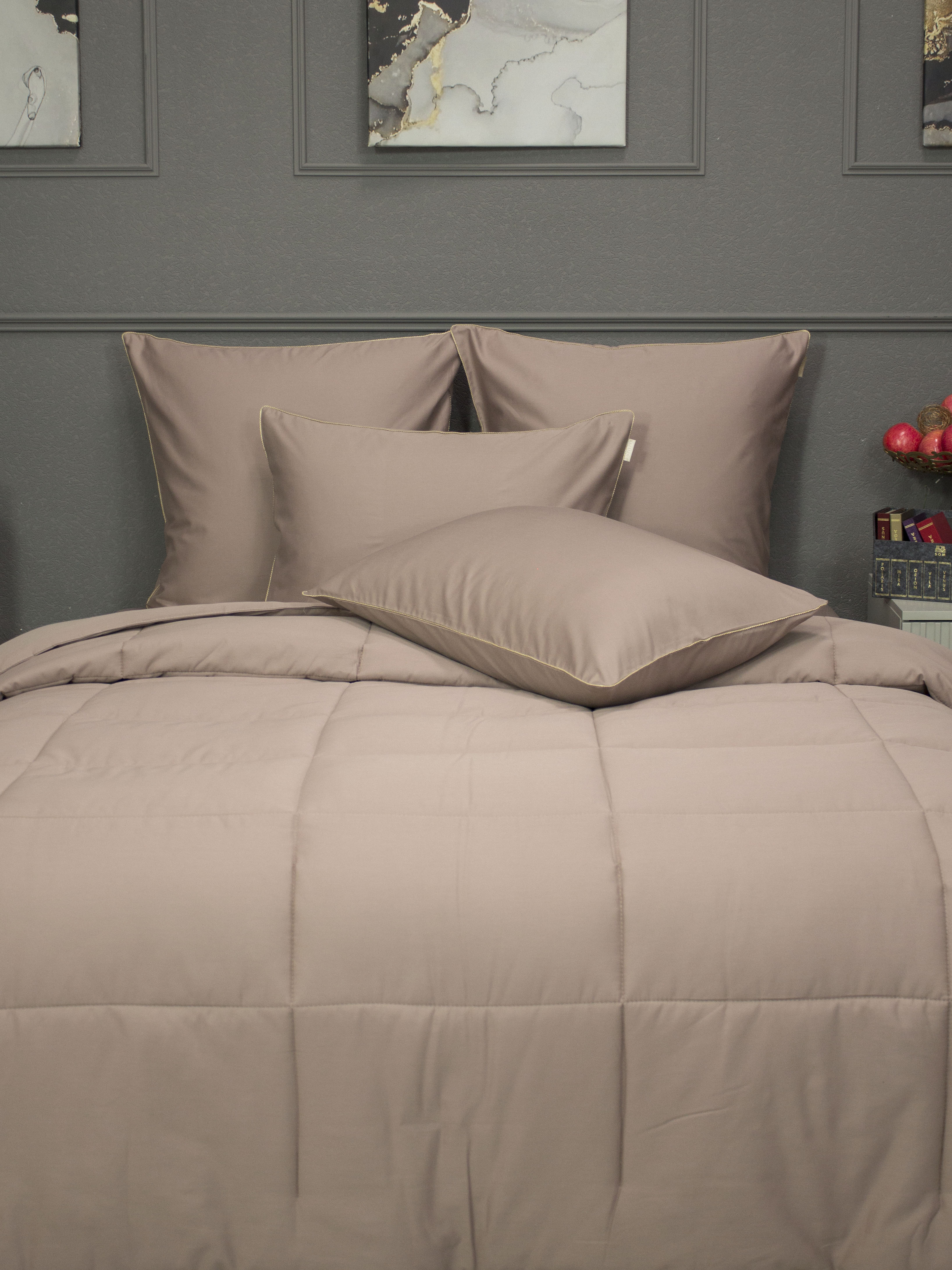 Коллекция Шеффилд Cotton. В основе коллекции — премиальный 100% хлопковый сатин: природная чистота, нежность в касании, благородный матовый оттенок. Ткань комплекта: 100% хлопок. Наполнитель: эко-волокно Микрогель — гипоаллергенный, лёгкий, с равномерным распределением тепла и комфортной терморегуляцией. Стежка “Шеффилд” — Шотландия у вас дома! Витой шелковистый кант — штрих утончённости в минималистичной эстетике; применяется в отделке наволочек иодеяла, мягко подчёркивая линии изделий.