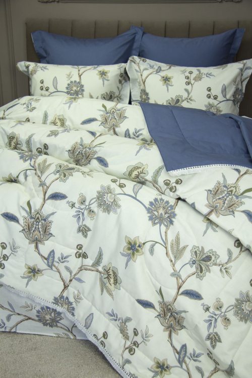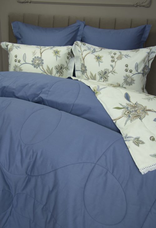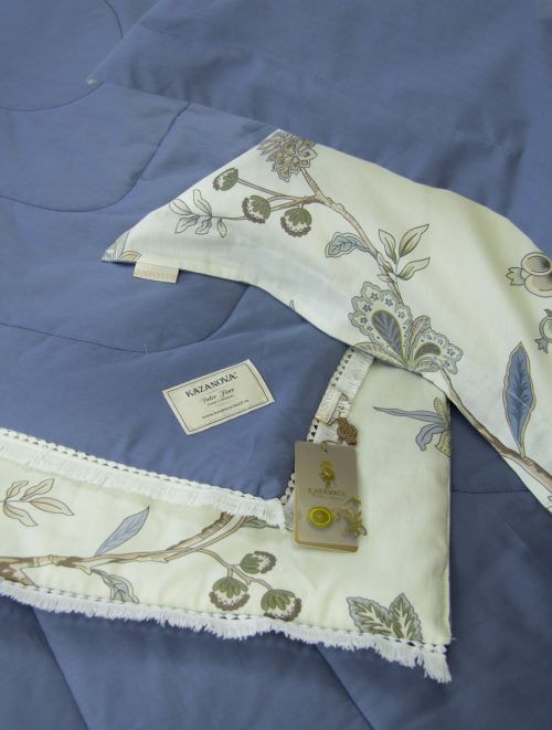 Всесезонная коллекция «Dolce Fiore Cotton» представляет собой комплекты постельного белья и легких двусторонних одеял, в комбинации цветного и однотонного сатина высокого качества. Комплект состоит из легкого двустороннего одеяла, с оригинальным дизайном стежки, отделанное кружевом с бахрамой с 3х сторон. Легко стирается, не требует глажки, быстро высыхает, что позволяет пользоваться им в любое время года.