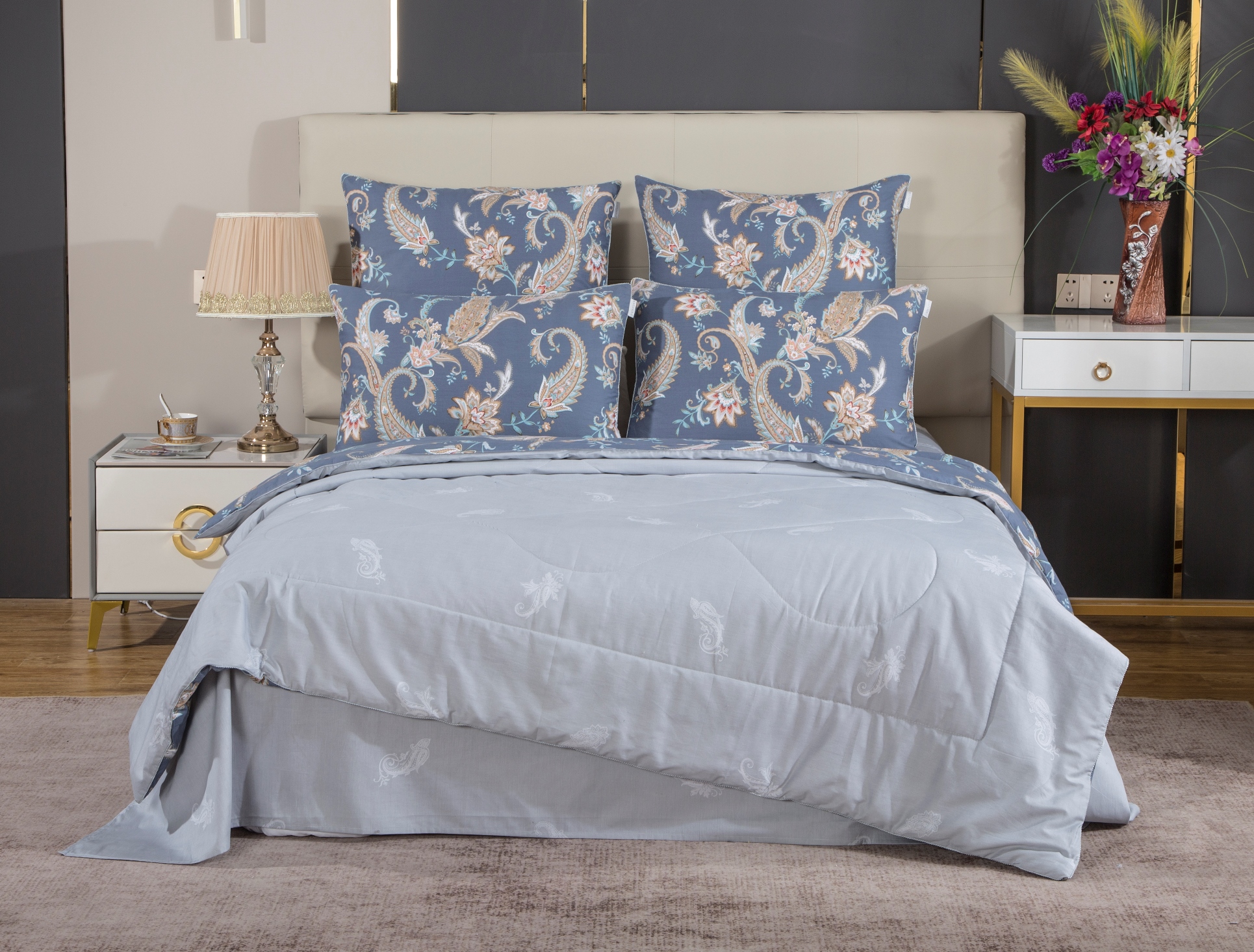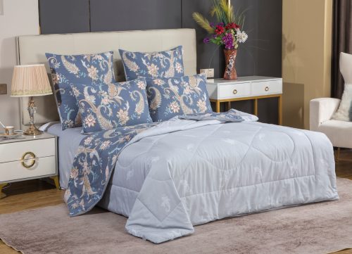 Всесезонная коллекция «Dolce Fiore Cotton» представляет собой комплекты постельного белья и легких двусторонних одеял, в комбинации цветного и однотонного сатина высокого качества. Комплект состоит из легкого двустороннего одеяла, с оригинальным дизайном стежки, отделанное кружевом с бахрамой с 3х сторон. Легко стирается, не требует глажки, быстро высыхает, что позволяет пользоваться им в любое время года. Наполнитель: благодаря миксу органического волокна льна и экофайбера, обладает невесомыми и облегающими свойствам, хорошей воздупроницаемостью и терморегуляцией.