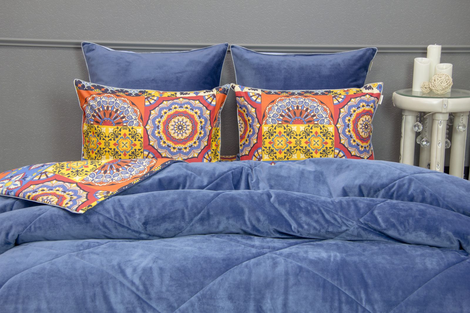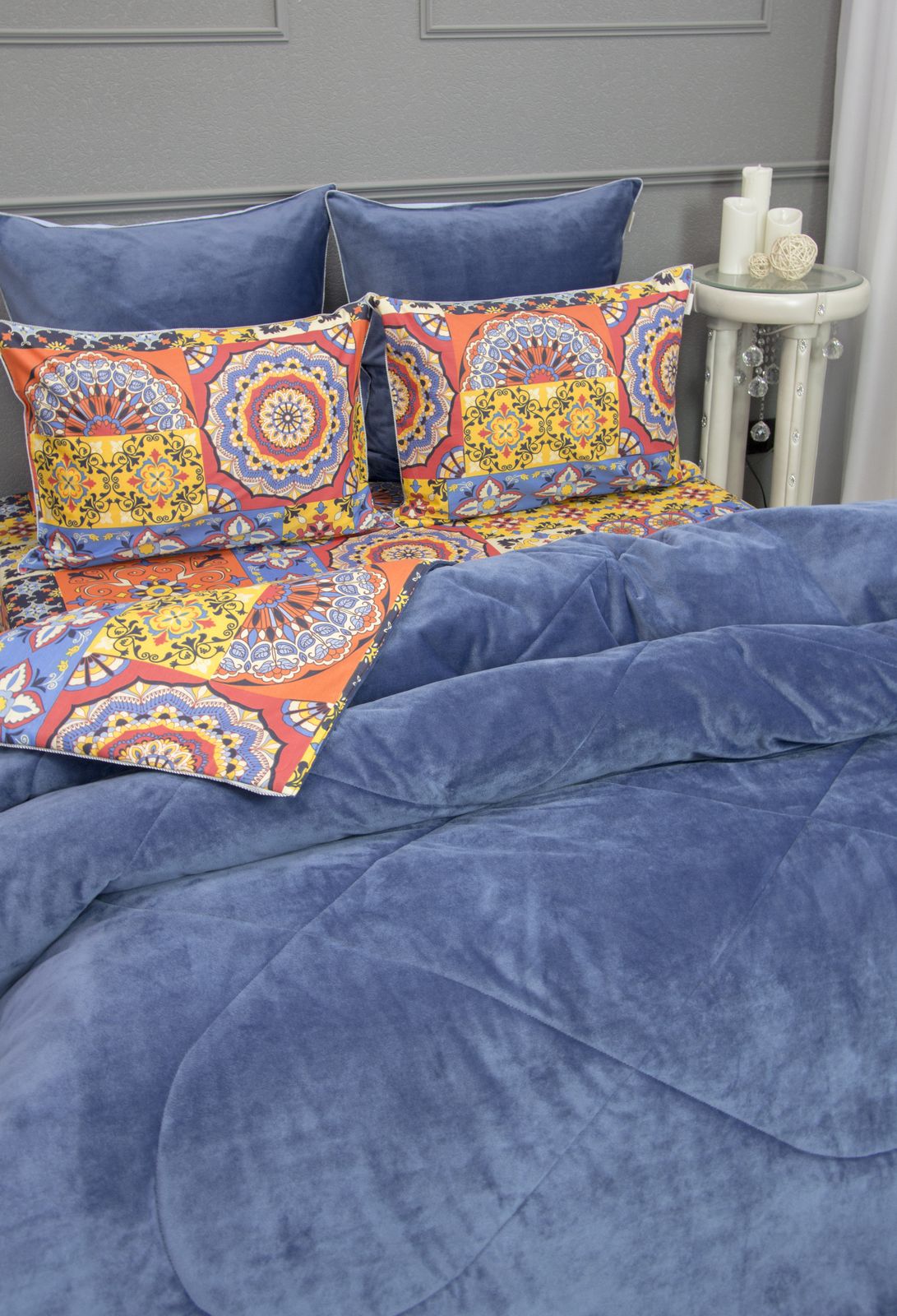 Летняя Коллекция АВС «Dolce Fiore» мы создали коллекцию из трёх видов ткани! Дизайнерские комплекты постельного белья с двухсторонним одеялом! А – прохладный сатин с рисунком, B – Solid Мако сатин, С — нежный велюр! — предусмотрен в одной стороне одеяла и наволочек 70*70. В одеяле — для любителей поспать под кондиционером, идеально подойдет велюровая сторона к телу, сторона с сатином — для любителей естественной прохлады в жару, отделано витым кантом и красивой слежкой! 4 наволочки: 50х70-2шт и 70х70-2шт, простынь из прохладного сатина. Коллекция представлена в 3х комплектациях: евро, семейное, полуторное. На выбор самые популярные цвета в этом сезоне.
