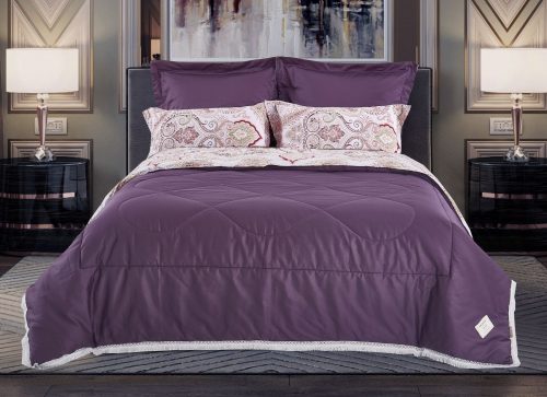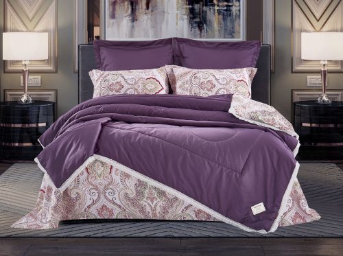 Всесезонная коллекция «Dolce Fiore Egypt Cotton» представляет собой комплекты постельного белья и легких двусторонних одеял, в комбинации цветного и однотонного сатина высокого качества. Комплект состоит из  легкого двустороннего одеяла, с оригинальным дизайном стежки, отделанное кружевом с бахрамой с 3х сторон. Легко стирается, не требует глажки, быстро высыхает, что позволяет пользоваться им в любое время года.