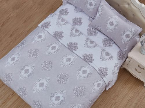 Комплект состоит из наволочек, простыни и одеяло-покрывала с оригинальным дизайном стежки, отделанное планкой с 4х сторон. Уникальным дышащим наполнителем «тинсулейт», обладающим невесомыми свойствам, что позволяет использовать его как летнее одеяло! Легко стирается и быстро сохнет. В комплекте исполузуется ткань сатинового плетения.