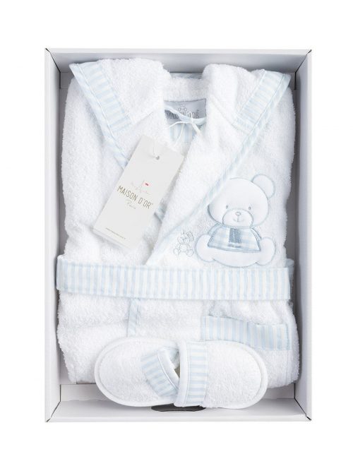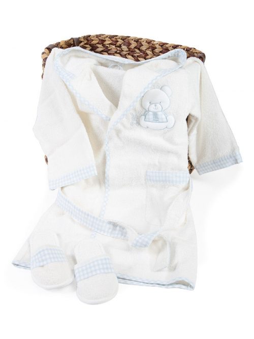 Очаровательный банный комплект Alpha для мальчика состоящий из детского халата и тапочек, подарит малышу настоящее удовольствие. Пушистый махровый халатик с капюшоном, на пояске (пришит со спины), сбоку имеется 1 накладной кармашек. На груди украшение в виде объемной аппликации мишки и плоской вышивки зайки. По краю кармана, застежки, капюшона и по манжеты рукава — декоративная вставка из ткани в бело-голубую клеточку. Махровые детские тапки мягкие, удобные. Так же присутствует декоративная клетчатая вставка тканью.