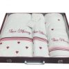 Полотенца сложены в подарочную упаковку с логотипом бренда.