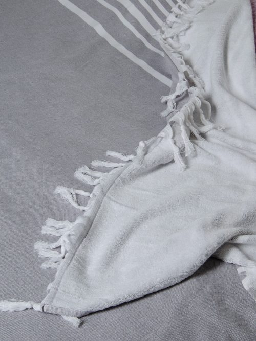 Покрывало-простыня из натурального хлопка с оборотной махровой стороной подарит вашему отдыху еще больше комфорта и приятных моментов. Дизайн покрывала с двух сторон декорирован декоративными кистями с бахромой, лицевая сторона из тканного полотна, оборотная часть выполнена из махры. Покрывало мягкое, обладает приятной фактурой, гипоаллергенное, из «дышащего» 100% хлопка.