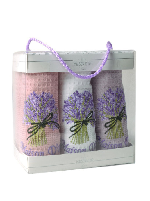 Полотенца сложены в подарочную упаковку с логотипом бренда.